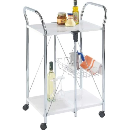 Der patentierte Küchen- und Beistellwagen Sunny in klassischem Weiß ist der optimale Haushalts- und Partybutler. Er bietet mit 2 Ablageflächen und zusätzlichem Korb nicht nur praktische, zusätzliche sondern auch dekorative Abstell- und Transportmöglichkeiten für Küche, Wohnzimmer oder Terrasse.