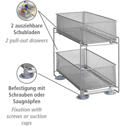 Das Wenko Schubladenregal mit 2 Etagen sorgt für mehr Platz und Ordnung im Küchenschrank oder Badezimmerschrank. Das ausziehbare Schubladen-Regal bietet Stauraum, wo er benötigt wird.